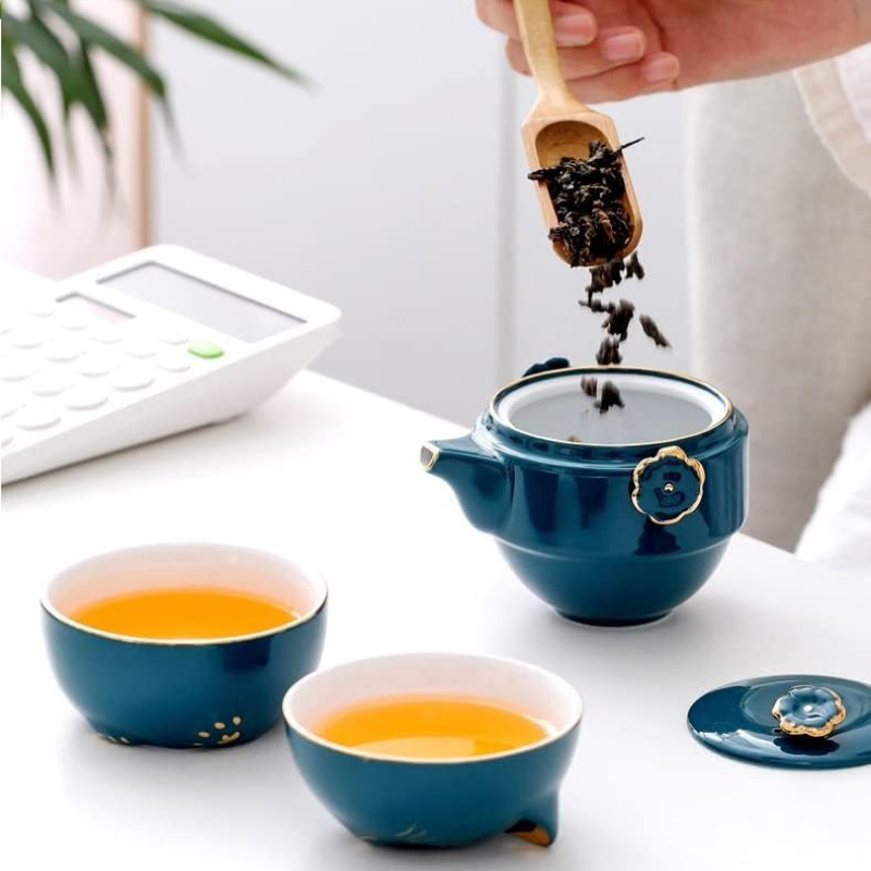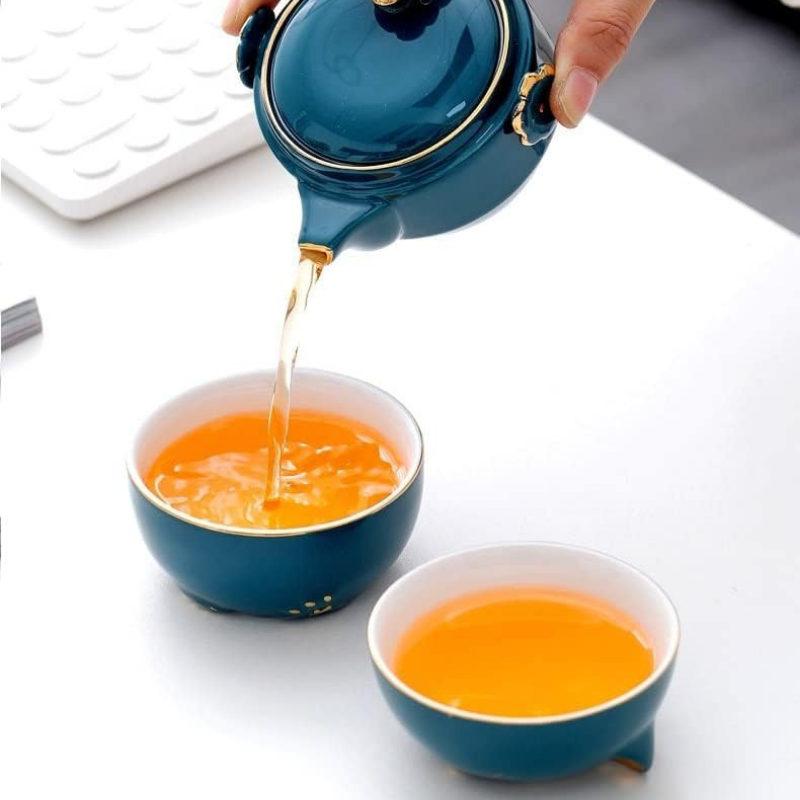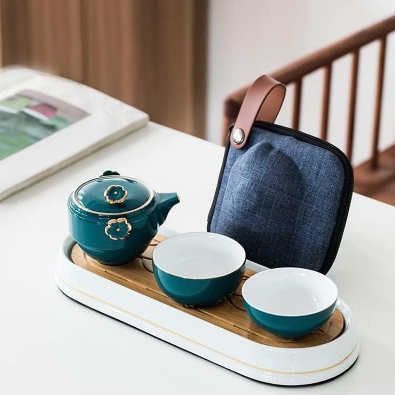 Conjunto Portátil: Conjunto de chá com bolsa de transporte resistente.
